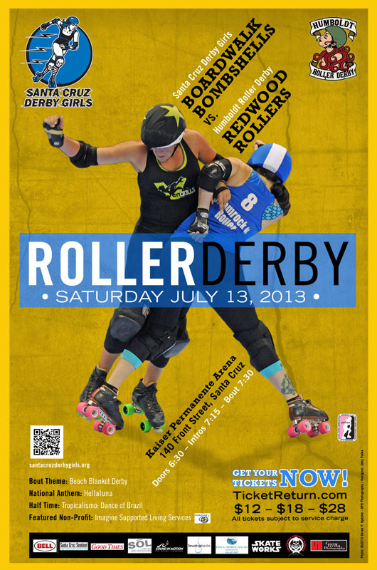 Art Director/Designer for the Santa Cruz Derby Girls. I designed bout posters, print advertising, and banner ads which contributed to their increased attendance. Several of my posters were published internationally in the book Bout Book- The He(ART) of Roller Derby.